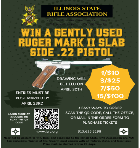 The Illinois State Rifle Association is a 501(c)4 non-profit organization, donations to Illinois State Rifle Association are not tax-deductible. Prize must be claimed within 90 days of drawing.